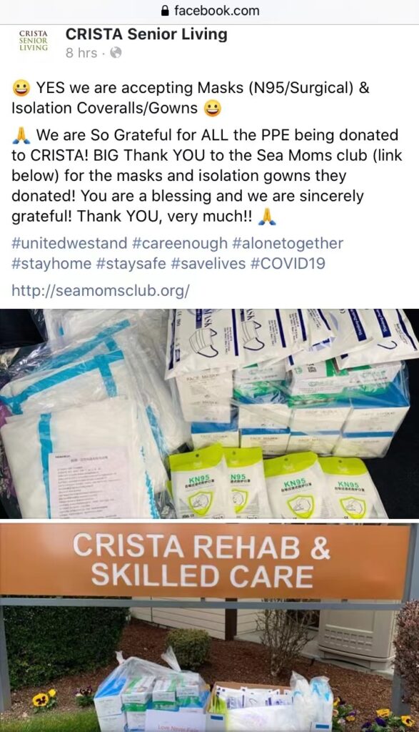 During pandemic Sea Moms Club donated masks to: