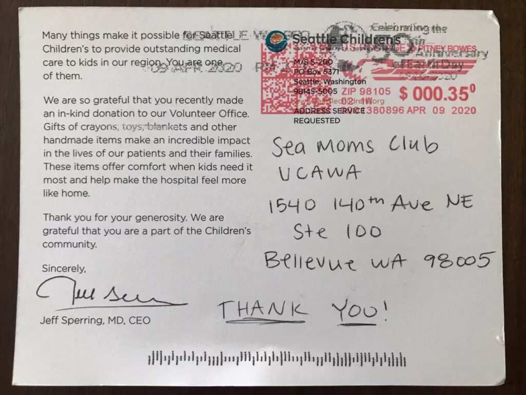 Support that SeaMoms Club offered to low income and needed communities.